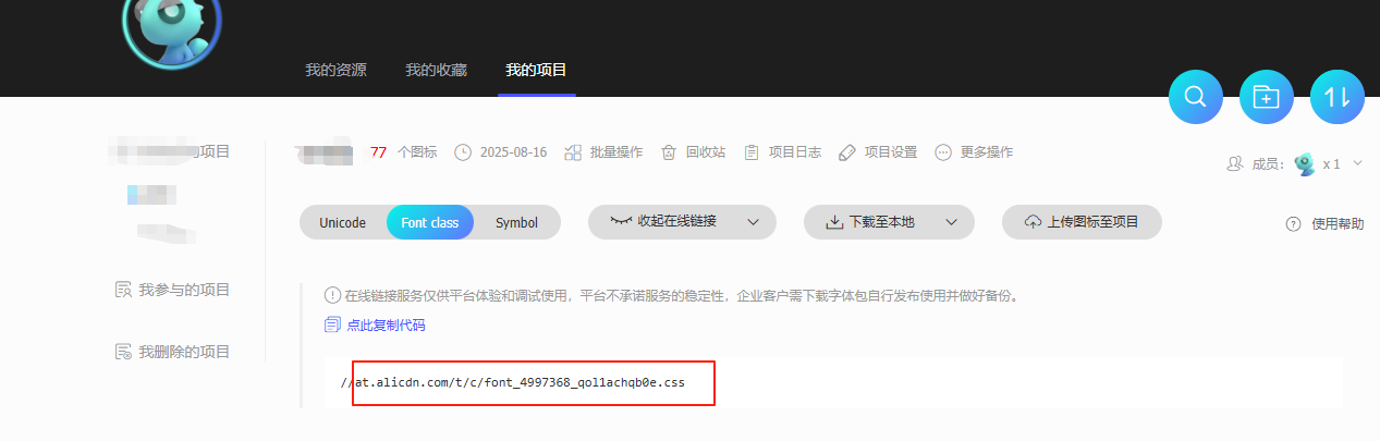 将上门的两个链接替换为自己的Font class链接和Symbol链接